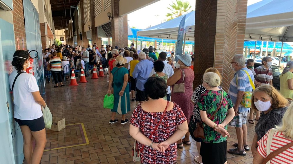 O primeiro dia de vacinação com idosos de 73 anos e profissionais de saúde que ainda não receberam a primeira dose do imunizante contra a COVID-19, provocou uma grande aglomeração entre os dois públicos nos postos de vacinação drive-thru em Natal.